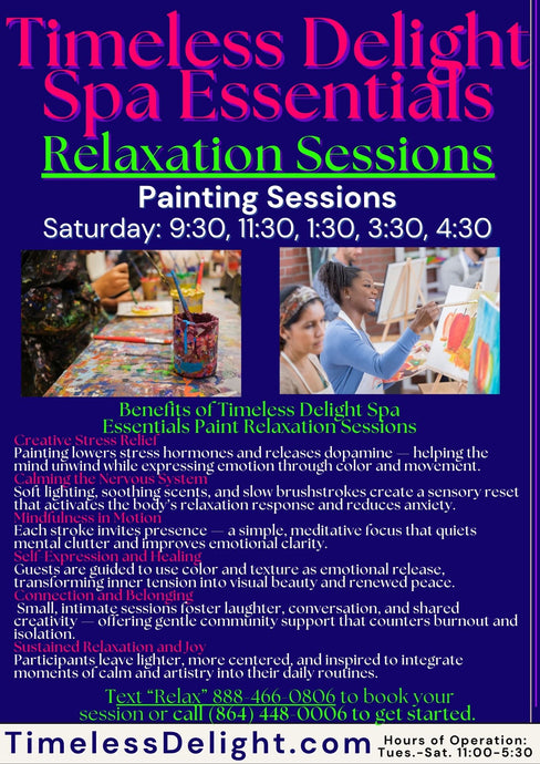 Timeless Delight Spa Essentials offers relaxation sessions designed to help people who are stressed, overworked, or emotionally drained reconnect with calm, rest, and balance. Every session blends mind–body techniques, sensory grounding, and gentle self-care practices to create a deep, restorative experience.